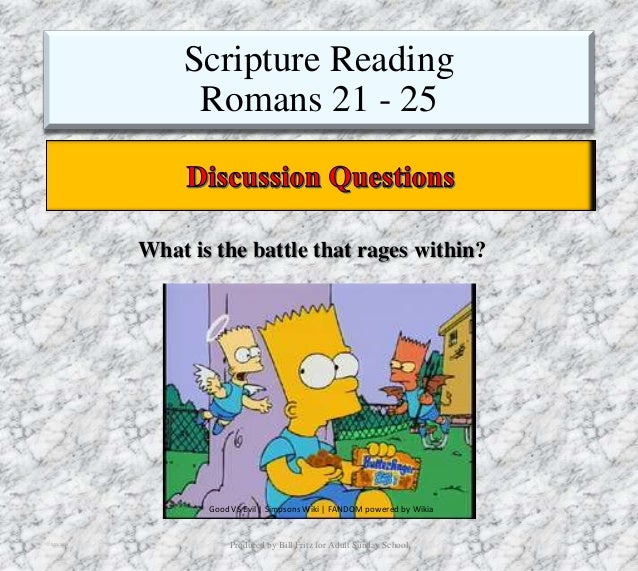 - 15. Scripture Reading Romans 21 - 25 7/13/2019 Produced by Bill Fritz for Adult Sunday School 15 What is the battle that rages within? Good VS Evil | Simpsons Wiki | FANDOM powered by Wikia