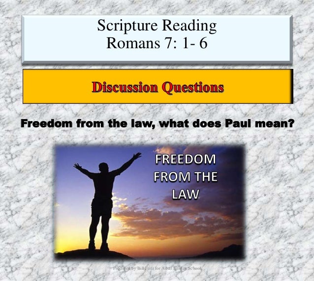 - 2. Scripture Reading Romans 7: 1- 6 Produced by Bill Fritz for Adult Sunday School7/13/2019 2 Freedom from the law, what does Paul mean?