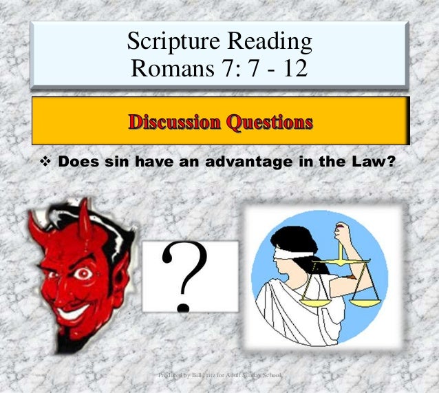 - 6. Scripture Reading Romans 7: 7 - 12 7/13/2019 Produced by Bill Fritz for Adult Sunday School 6 Does sin have an advantage in the Law?
