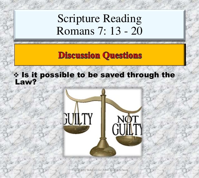 - 9. Scripture Reading Romans 7: 13 - 20 7/13/2019 Produced by Bill Fritz for Adult Sunday School 9 Is it possible to be saved through the Law?